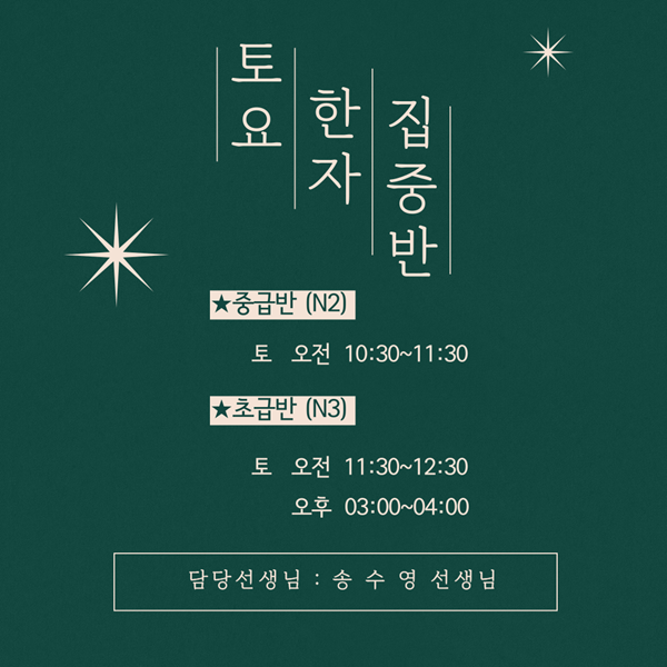 ▷▶ 2026년 상반기 토요 한자 집중반 시간표 ◀◁ 아사히일본어전문학원 25-12-07 20:55 52 0 ▷▶ 2026년 상반기 토요 한자 집중반 시간표 ◀◁ 댓글목록 등록된 댓글이 없습니다. 이전 목록 다음