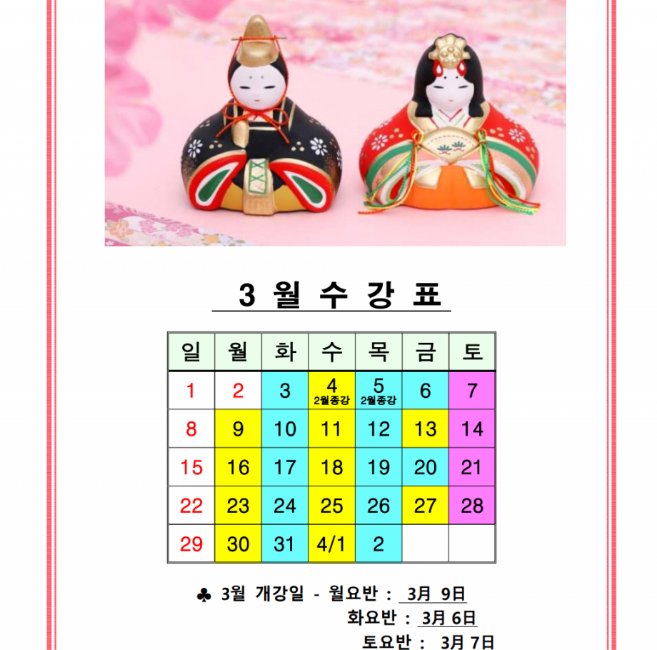 ♧♣ 2026년 3월 수강표 ♣♧