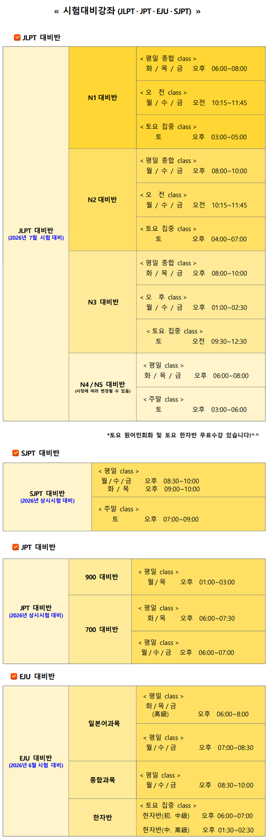 2월 시험대비반 시간표입니다~^^